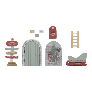 Este conjunto encantador permite que as crianças criem a sua própria cena natalícia, adicionando um toque festivo à sua casa. Design festivo: Inclui uma porta com ilustração dupla face que pode ser colocada no rodapé, juntamente com acessórios como uma caixa de correio com cartas de Natal, um mini trenó, degraus para a porta e um…