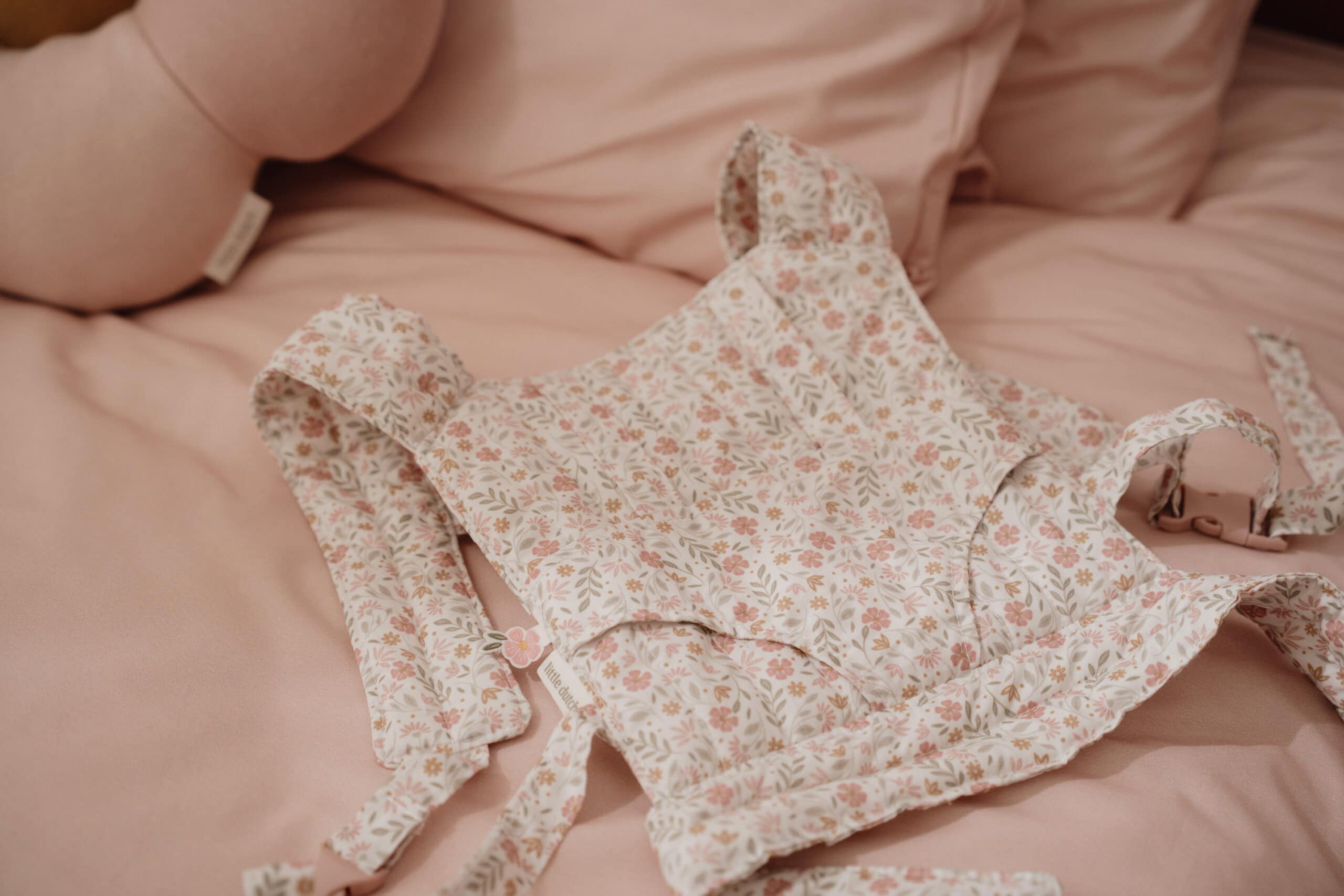 Projetado com o delicado e adorável padrão Soft Flowers para um visual estiloso. Ideal para brincar de faz de conta e imitar os cuidados com um bebé de verdade, mantendo suas mãos livres.