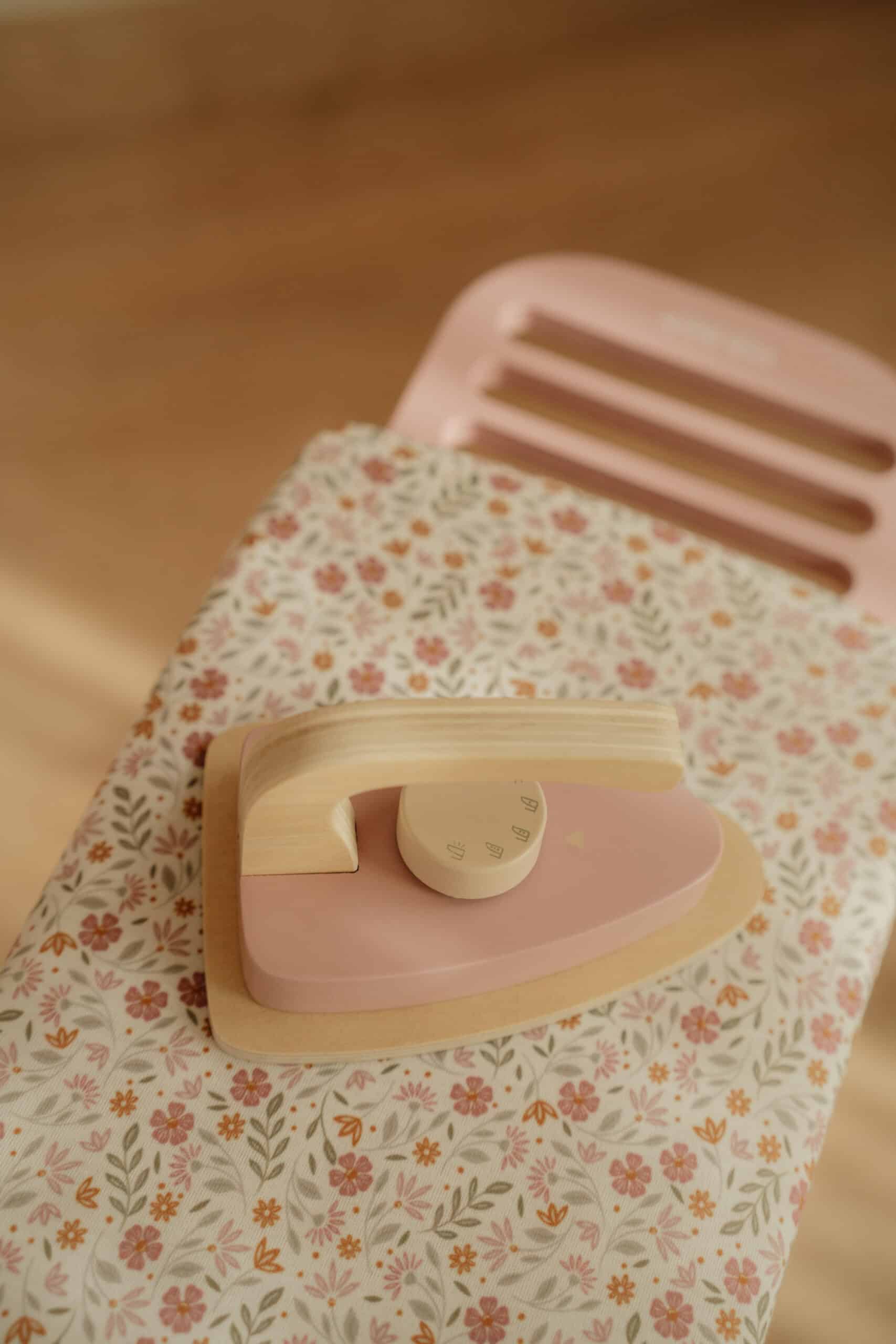 Passar a ferro como os adultos! Com esta bonita tábua de engomar de madeira eo ferro a condizer, os mais pequenos podem passar com perfeição as roupas das suas bonecas ou peluches.